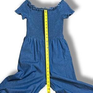 Blue Rain Denim Jumper Womens Blue Ellison Smocked Pantsuit Size S