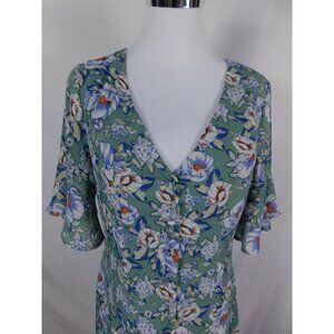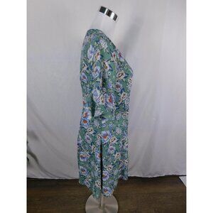 Blue Rain Dress Womens Small Green Floral Button Front V Neck Lined Opaline 02