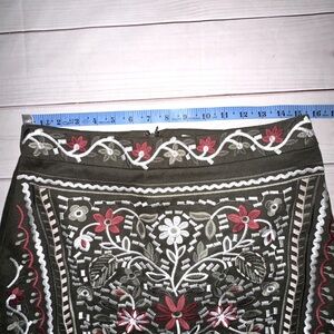 Blue Rain Embroidered Pencil Skirt - Olive and Burgundy Size Medium Boho Office