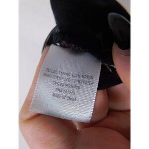 • Fabric: 100% rayon (body), 100% polyester (embroidery)