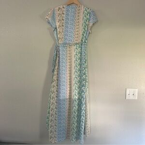 Blue Rain Floral Midi Wrap Dress Pastel Formal Lightweight Wedding Guest Garden