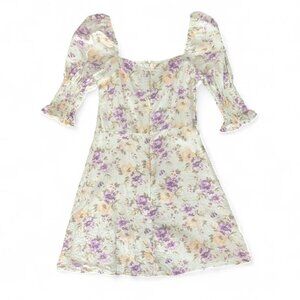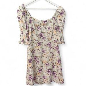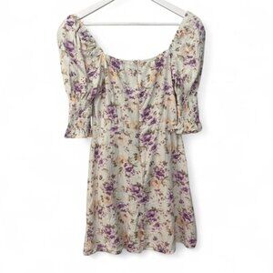 Blue Rain Francesca's Collection Small Light Blue and Purple Floral Linen Blend Women's Short Mini Dress Size S
