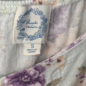Blue Rain Francesca's Collection Small Light Blue Purple Floral Linen Dress Sz S