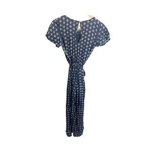 Blue Rain Francescas Jumpsuit Navy Blue Short Sleeved Boho Wide Leg Tie Waist XS