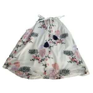 Blue Rain M Boho Sleeveless Top Embroidered Floral Fern Lined Tassels Wms Medium