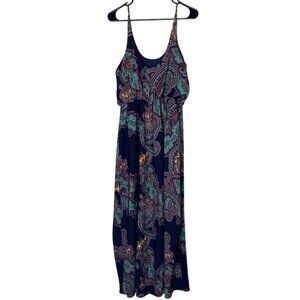 Blue Rain Maxi Dress M Made in USA Boho Paisley Spaghetti Strap Summer
