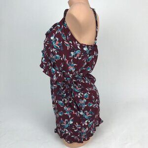 Blue Rain Multicolor Floral Print Romper Spaghetti Strap Ruffle V-Neck Size Small