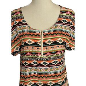 Blue Rain Women's Aztec Print Round Neck Short Sleeve Open Back Blouse