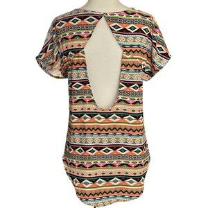 Blue Rain Multicolored Round Neck Short Sleeve Hi-Lo Open Back Blouse Women's S