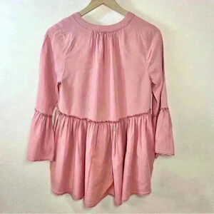 Blue Rain Pink Peplum Bell Sleeve Blouse with Crisscross Neckline Size Small