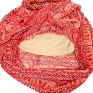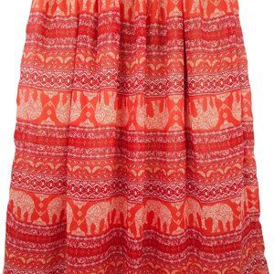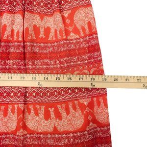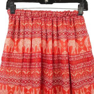 Blue Rain Pleated Elephant Print Long Skirt Size S Stretchy Elastic Waist Boho Short Lining