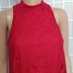 This elegant red lacey sleeveless top is perfect for any occasion.
