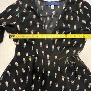 Blue Rain Small Black Ruffle Cactus Flowy Tie Wrap Blouse