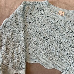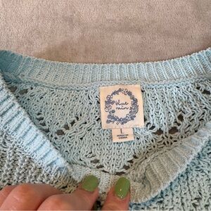 Blue Rain Sweater - Light blue light weight sweater in good condition. Has some light staining on the ends of the sleeves but still has lots wear. Perfect as a beach cover up!