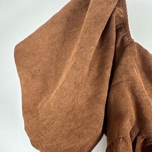Blue Rain Francesca’s Women's Cassie Bow Back Corduroy Puff Sleeve Mini Brown Dress, Size L