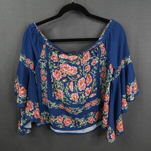 Blue Rain Womens Top Small Blue Floral Flowy Coquette Romantic Cottagcore NEW