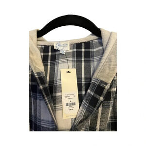 Blue Rain by Francesca's Womens Crop Top hooded plaid button down size M NWT