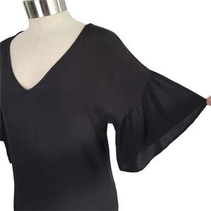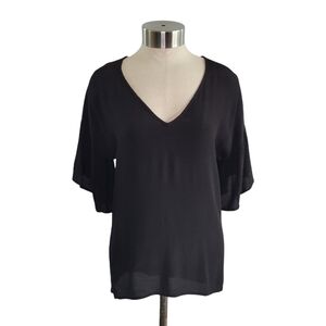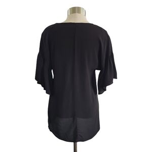 Blue Rain by Francesca's black flutter sleeve v-neck semi-sheer chiffon blouse in women's size XS.