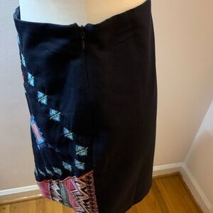 Blue Rain navy cotton skirt with embroidered aztec designs on skirt..has invisible zipper on side of skirt..