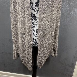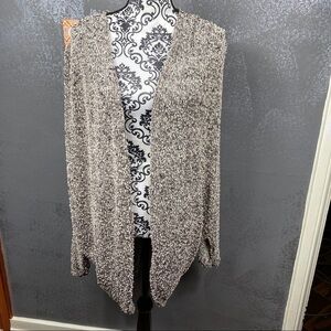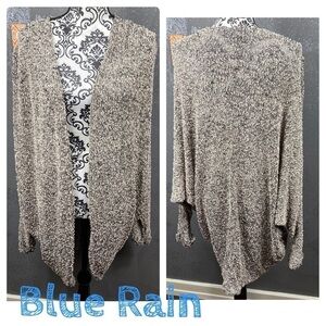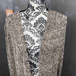 Blue Rain. Black and Tan textured open front cardigan sweater. 100% polyester. One size.