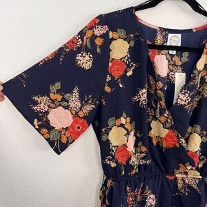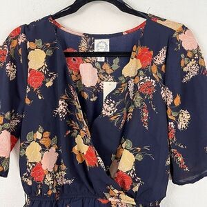 Blue Rain Francescas NWT Blue Peplum Scalloped Trim Floral Wrap Blouse Medium