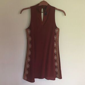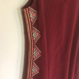 Women’s Gently used Blue Rain Tribal dress size XS. Beautiful Burgundy sleeveless dress with embroidery down each side. Great condition.