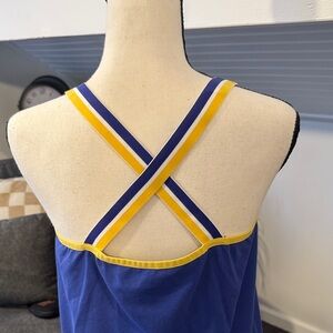 Blue tank top with Rams logo and yellow accents.