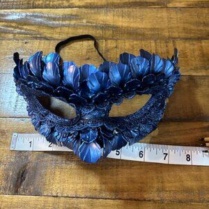 Add a touch of mystery with this metallic blue masquerade mask from Spirit Halloween. Designed with layered, petal-like leaves and delicate lace trim around the eyes, this mask has a bold and elegant look that’s perfect for costume parties, masquerades, or Halloween events.