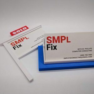 The sides of the card holder look like a house with a window and chimney w/picket fence and hanging sign.