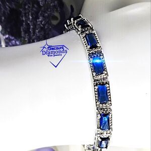Blue Rectangular 5 mm Princess Cut Topaz Tennis Bracelet on 925 Silver