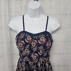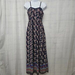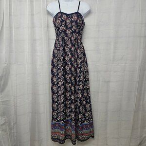 Blue Red Sleeveless Floral Maxi Dress Boho Festival Hippie XS