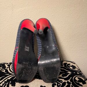 Unique, Super cute, Blue & Red Patent w/ Black Stripes, Black Patent w/ Red Polka Dot Bows, Sailor, Pin-up, Rockabilly, Platform Stiletto Heels.