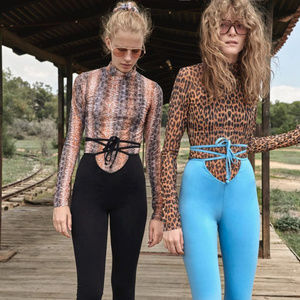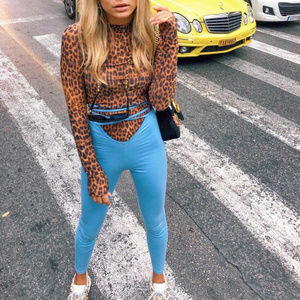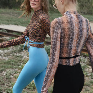 I'm obsessed with these! Sky blue retro sort-of-80s style leggings. Featuring a very high waist with a u-shaped cutout and long ties! NWOT.