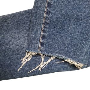 Blue Revival Blue Distressed Raw Hem Cropped Jeans with Piping Detail Size 26