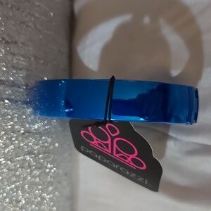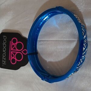 Stunning blue bracelet adorned with sparkling rhinestones. Perfect for adding a touch of glamour.