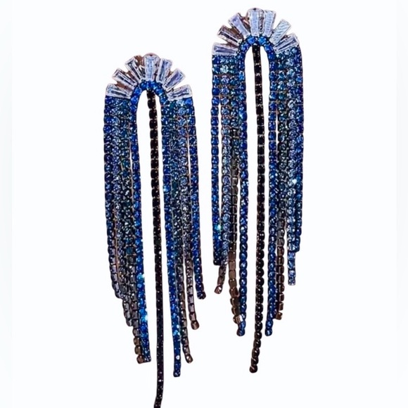 Blue Rhinestone Inlaid Tassel Dangle Eareings Silver Plated Brand new Boutique