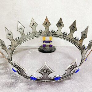 Blue Rhinestone Medieval, Renaissance Faire, Royal Prince Diadem, Silver Crown
