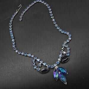 Blue Rhinestone Necklace Aurora Borealis Vintage Glam Jewelry