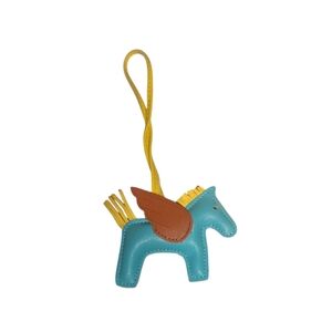 NWT Blue Rhinestone Pegasus Bag Charm with Silver Wing and vibrant yellow faux leather tail and mane. Add a pop of color to your look.