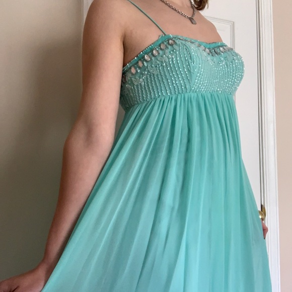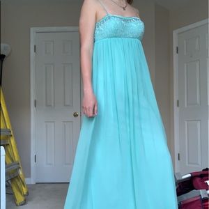 Beautiful flowy light blue prom dress with rhinestones!