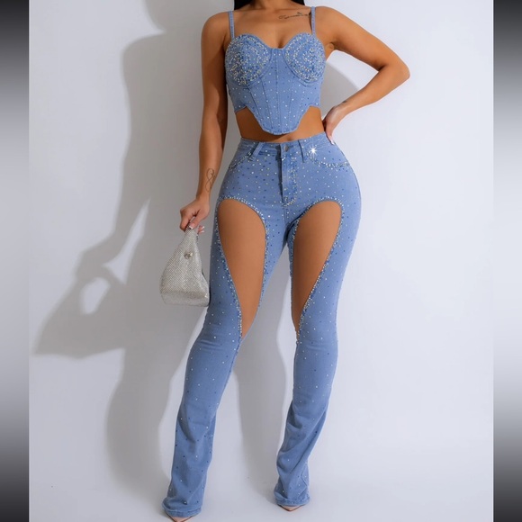 This set has stretch, adjustable straps and back zipper. 34” inseam. Tall friendly.