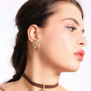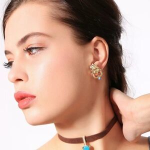 Blue Rhinestone Matt Gold Vintage Stud Earrings
