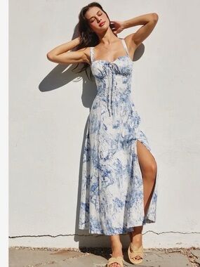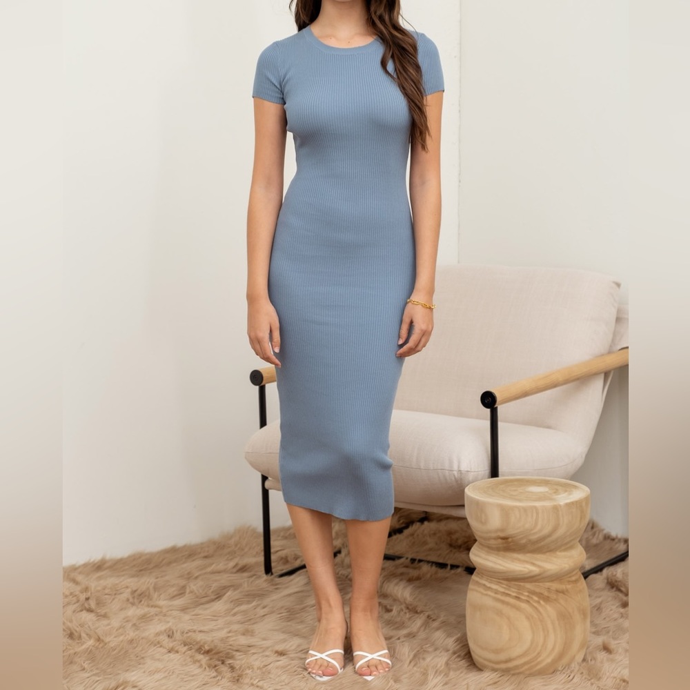 Blue - Rib Knit Midi Dress