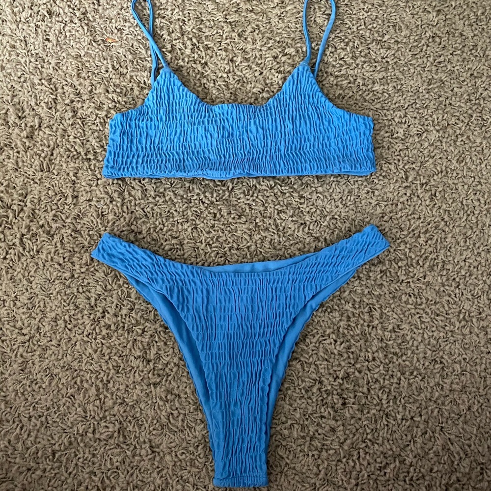 -ribbed bandeau bikini -high cut, cheeky bottoms -size medium -slight use, still in great condition💙