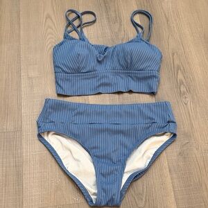 Blue Ribbed Bikini Set