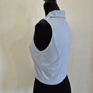 Blue Ribbed Collared Crop Top