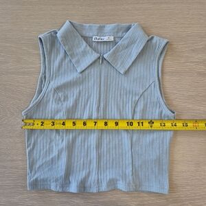 Elevate your style with this chic light blue ribbed crop top. The zip-up front offers a contemporary flair, perfect for any occasion.