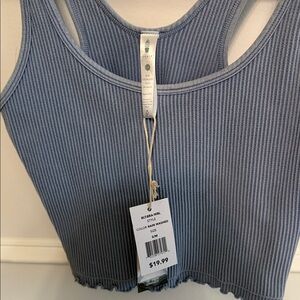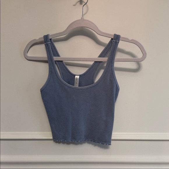 Elevate your casual look with this stylish blue ribbed crop top. Perfect for any occasion.