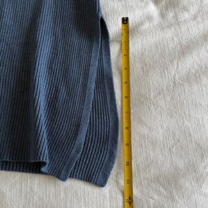 Easy and comfortable, moderate weight knit sweater dress with slit that ensures it’s not too fitted at the bottom. Great condition! Has good stretch.
