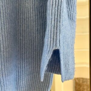 Cozy blue ribbed knit sweater with cute split sleeve detail. Perfect for cool weather.